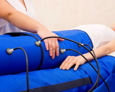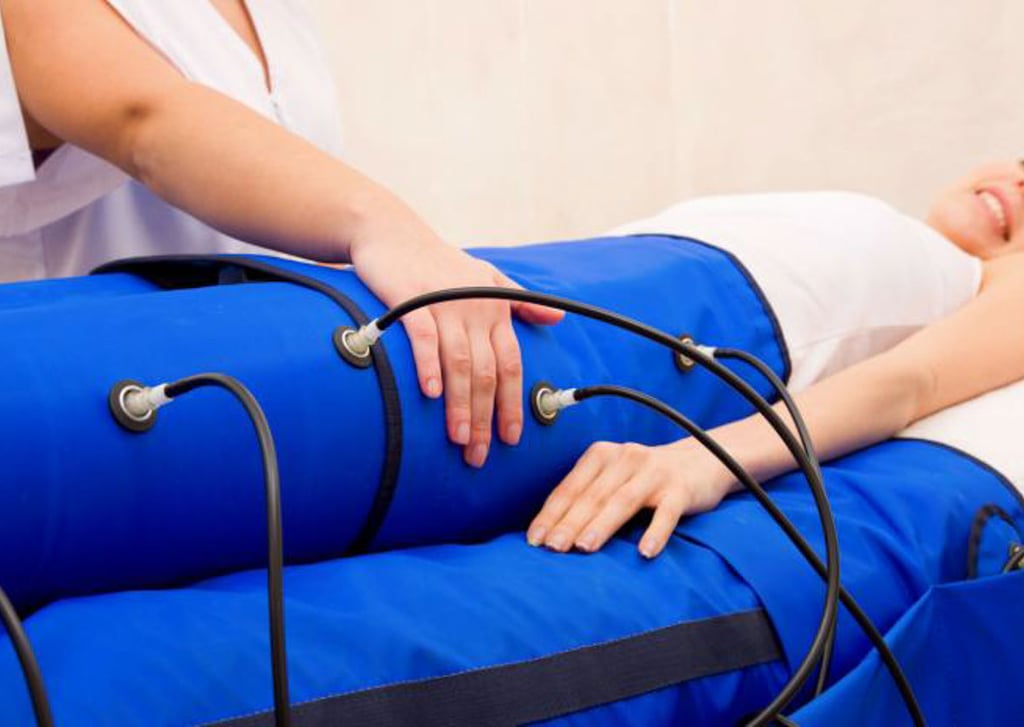 La pressoterapia è un trattamento estetico che si basa sulla pressione esterna degli arti del paziente, attraverso un’apparecchiatura specifica. Le zone trattabili sono normalmente gli arti e la zona addominale, tramite degli applicatori (divisi normalmente in almeno 4 sezioni) che vengono indossati dal paziente (gambali, bracciali o fascia addominale), e gonfiati in maniera sequenziale (dalla sezione più estrema tipo il piede o la mano verso il tronco). È importante che ogni seduta del trattamento con apparecchiature per pressoterapia avvenga solo dopo aver sbloccato manualmente i centri di raccolta del sistema linfatico (svuotamento delle stazioni linfonodali, partendo da quelle sopraclaveari, passando poi a quelle inguinali e terminando con quelle poplitee) Questo tipo di trattamento estetico viene praticato a chi soffre di ritenzione idrica, sovrappeso (in quanto tutto il sistema linfatico e circolatorio è stressato), o per migliorare gli inestetismi causati dalla cellulite.