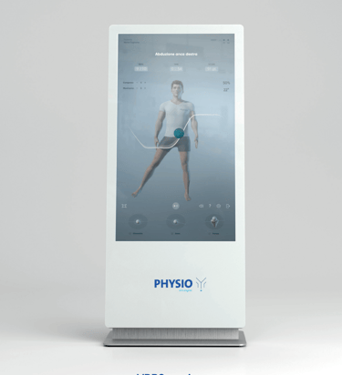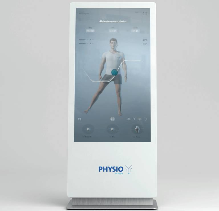 Il sistema Physio permette la visualizzazione verticale degli scenari riabilitativi per un’ottimale immersività del Paziente. Physio è utilizzato come routine clinica per la riabilitazione di un ampio spettro di patologie tramite i numerosi moduli, tra i quali: motorio, posturale dinamico e statico, facciale, cardiorespiratorio, ortopedico ed altri.
